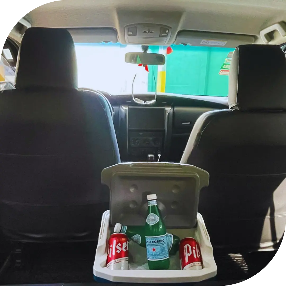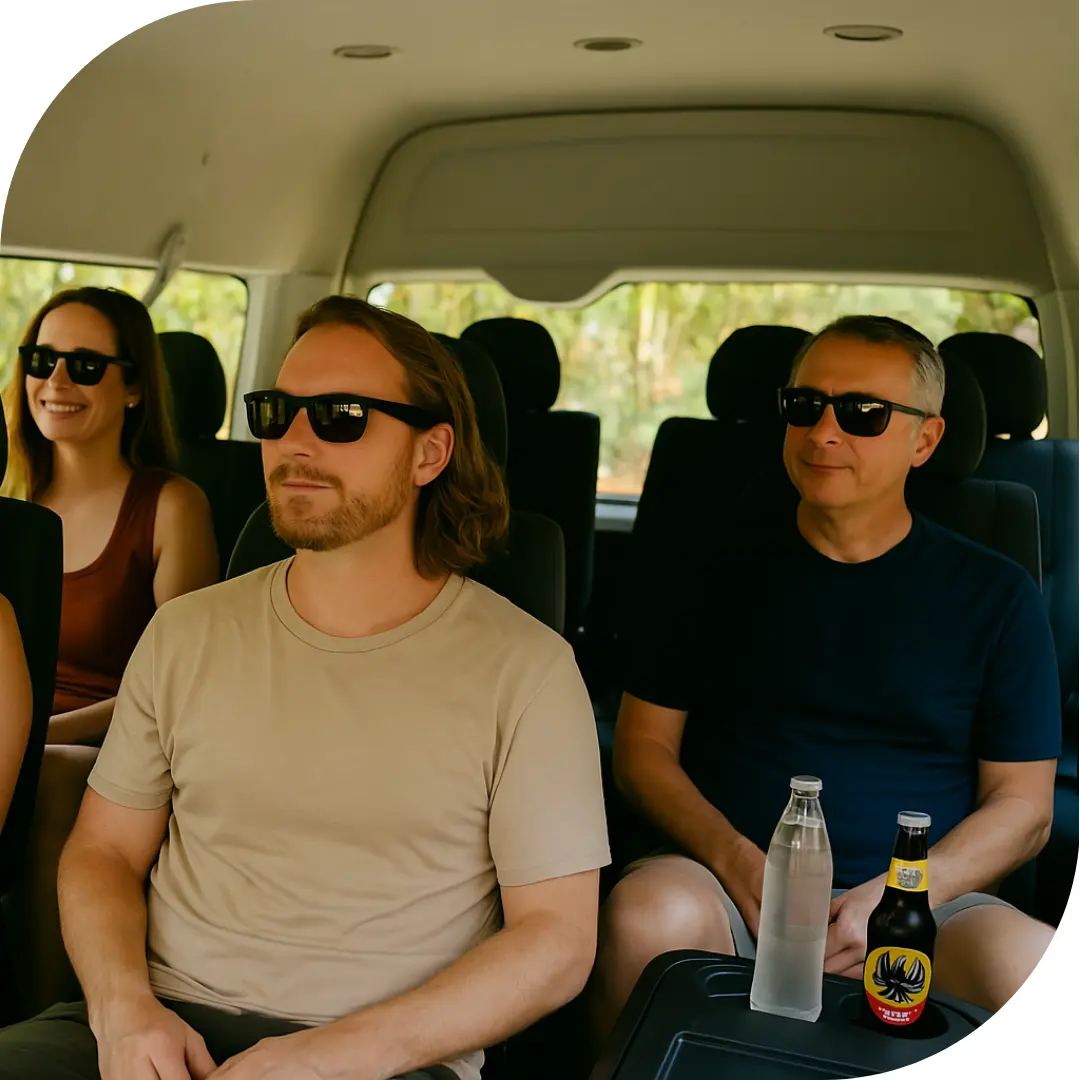 - Incluye hielera con agua embotellada y cervezas. Traslados en miniván con aire acondicionado y cómodos asientos.